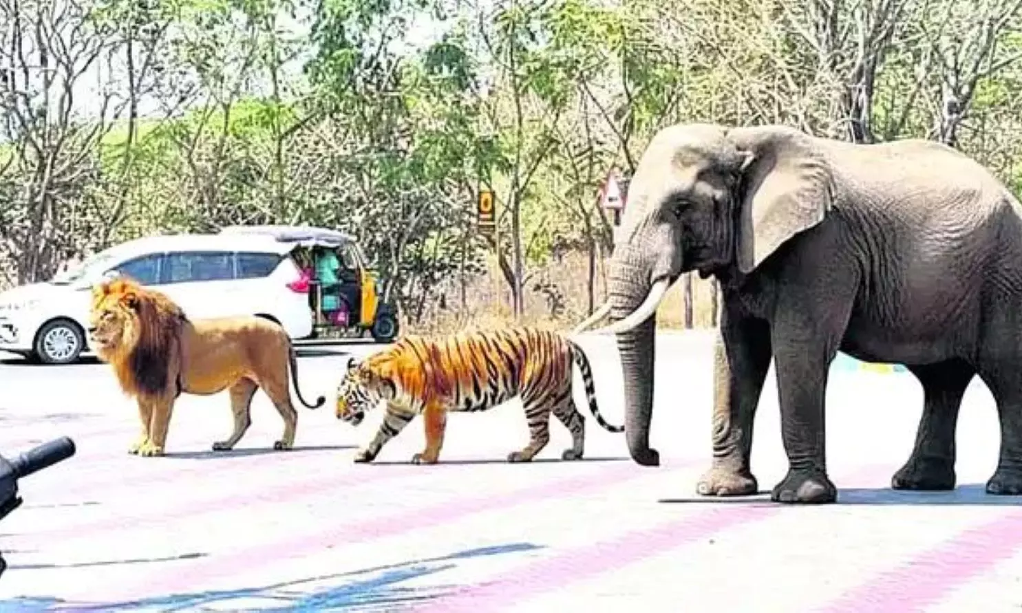 The images, which surfaced two days ago, depicted a tiger inside the premises of a Bharat Petroleum fuel station. On Sunday night, another image showing a lion and an elephant at the same location was shared on various platforms, triggering panic among residents.