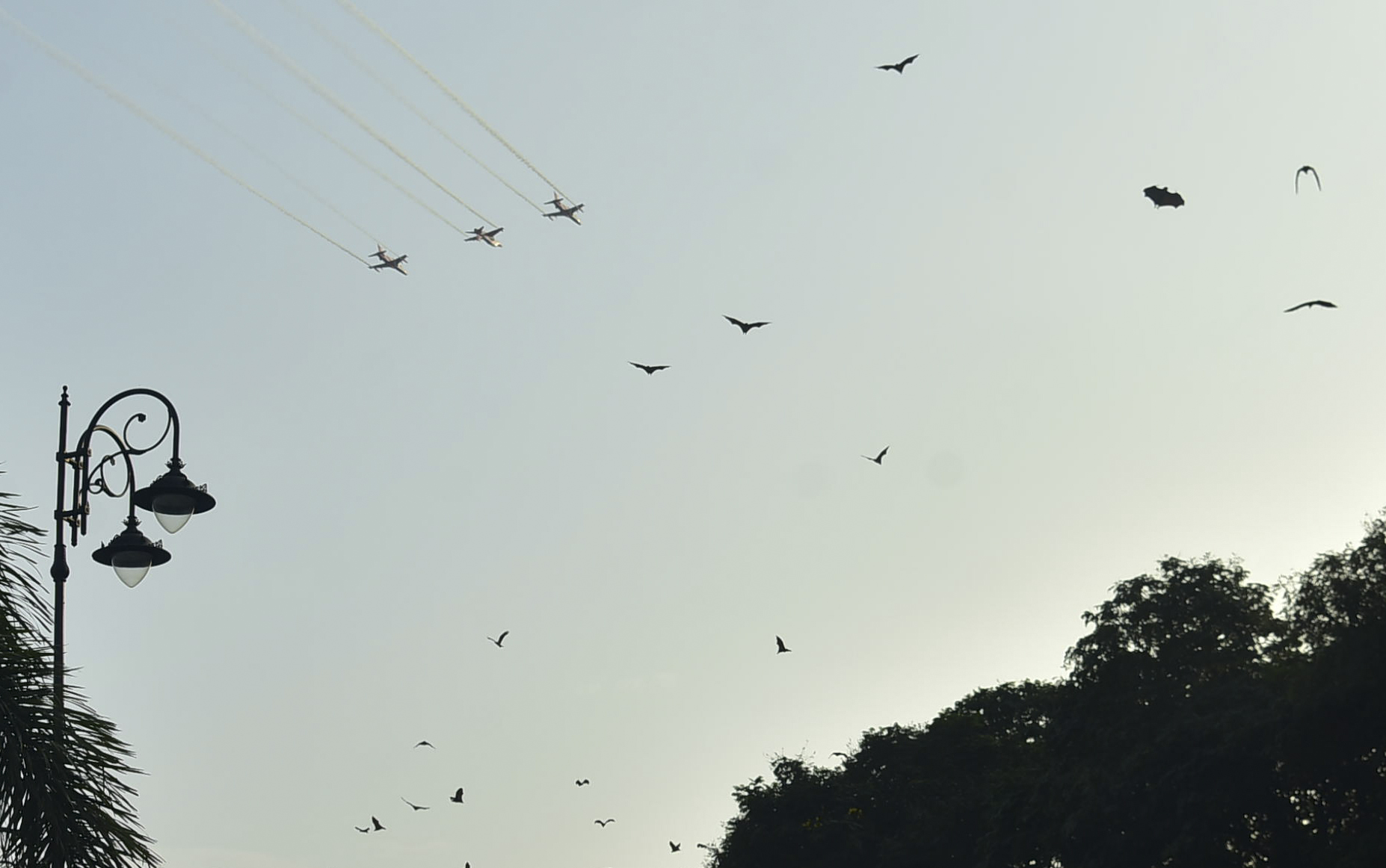 The 30-minute show demonstrated the skill of the Surya Kiran’s 12 pilots, flying nine Hawk Mk 132 aircraft in intricate formations. The manoeuvres included loops, rolls, crosses and inverted flying. The team also formed patterns such as the diamond, helical (DNA) structures and the ‘Surya Kiran burst’.