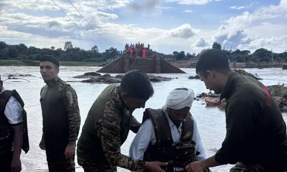Hyderabad: An Indian Army column from the Bison Division was deployed in Medak district on Friday to carry out rescue operations after the overflow of Pocharam dam reservoir and the collapse of the SH-765D bridge disrupted connectivity and stranded residents.