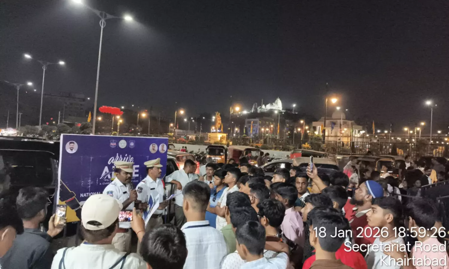 HYDERABAD: Saifabad traffic police organised an ‘Arrive Alive’ campaign, part of an ongoing statewide drive, at the at Lumbini Park on Saturday. Saifabad traffic inspector Madhusudan appealed to citizens to pledge strict adherence to road safety rules. He urged participants to demonstrate their commitment by giving a missed call to 9240015225, through which they would receive a 'certificate of commitment'.