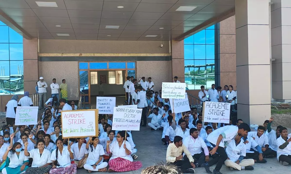 MBBS students from the college protested and gave representation to the collector on severe lack of basic facilities, faculty and infrastructure in the medical college.