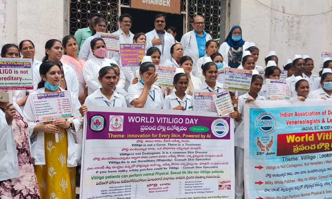 To mark the occasion, the department of dermatology, venereology and leprosy (DVL) at Osmania Medical College and General Hospital organised a rally and seminar on Wednesday. “Vitiligo affects nearly 1 per cent of the world’s population. It is caused by the destruction of melanocytes, the pigment-producing cells, leading to white patches on the skin. The condition is not contagious, not life-threatening and certainly not something to be stigmatised,” said Dr Bhumesh Kumar Katakam, head of the DVL department.