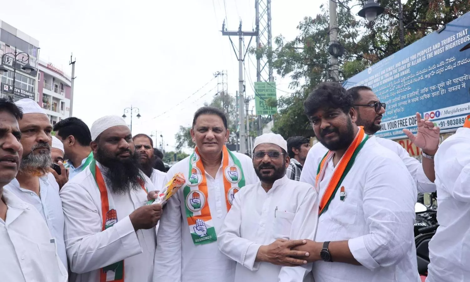 Hyderabad: Former MP and senior Congress leader Azharuddin has appealed to voters to ensure a landslide victory for Congress candidate Naveen Yadav in Jubilee Hills. Campaigning alongside Yadav in Sheikhpet, Azharuddin, along with Muslim community leaders, highlighted the welfare schemes and development initiatives undertaken by the Congress party.