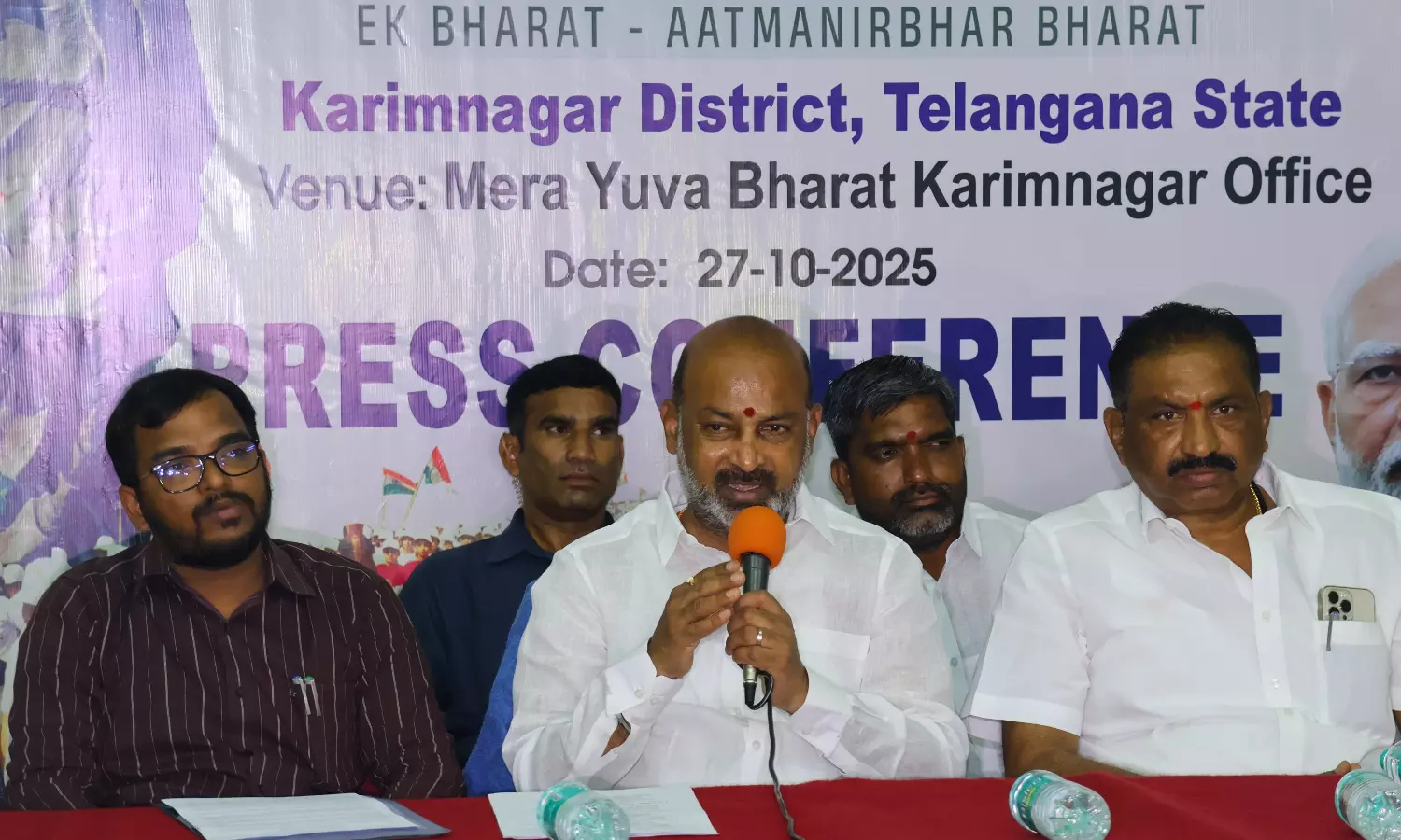 Earlier in the day, Sanjay Kumar attended the closing ceremony of the 8th National Poshan Maha Abhiyan celebrations at Kalabharathi Auditorium in Karimnagar. Later, he addressed the media at the Mera Yuva Bharat office near the Karimnagar bus stand, during the 150th birth anniversary celebrations of freedom fighter and Iron Man of India, Sardar Vallabhbhai Patel.