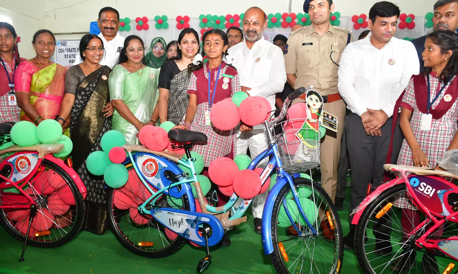 Karimnagar: Union minister of state for home Bandi Sanjay Kumar distributed bicycles to girl students at the TNGO Function Hall in Karimnagar on Saturday marking a decade of the "Beti Bachao – Beti Padhao" campaign.