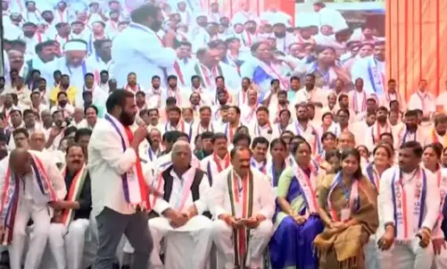 State Congress president B Mahesh Kumar Goud, several ruling party MLAs, and ministers took part in the protest.