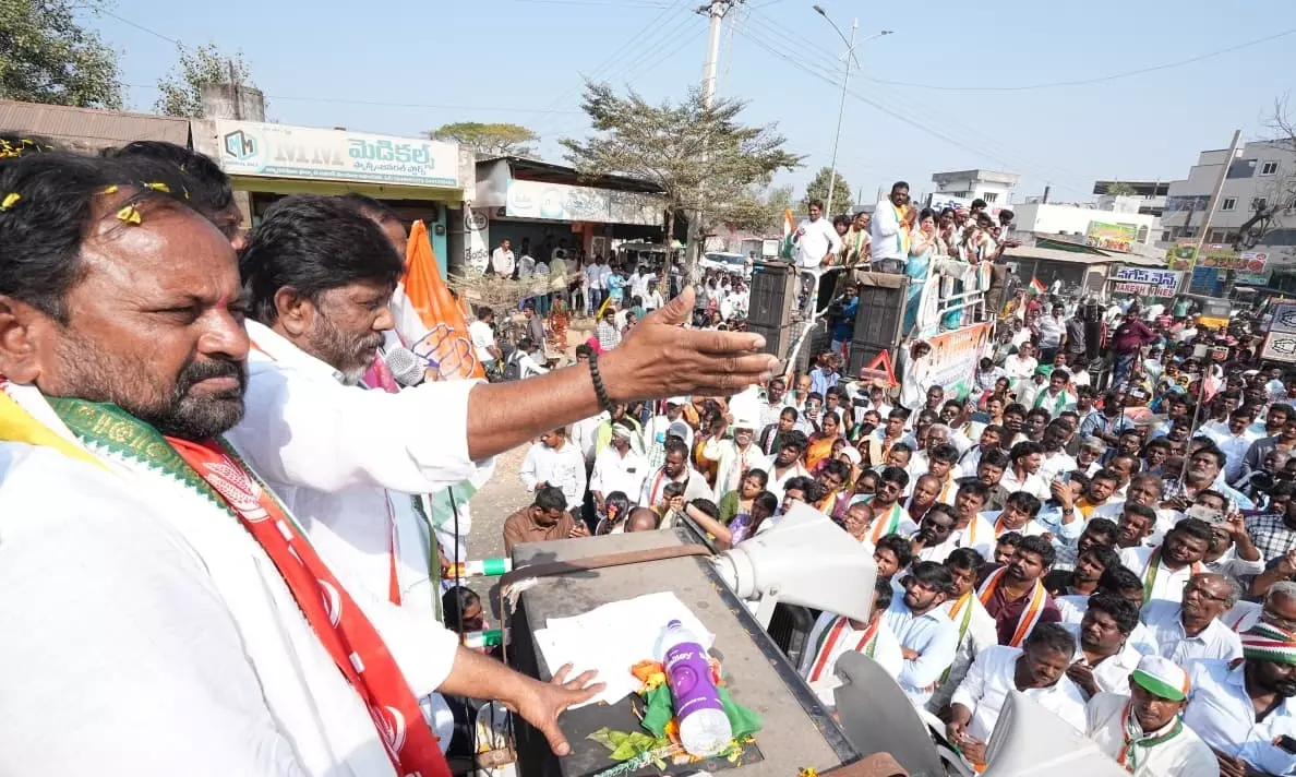 Nalgonda: Deputy Chief Minister Mallu Bhatti Vikramarka on Sunday called on urban voters to question BRS leaders on why they should be supported in the ongoing municipal elections. Campaigning in Wyra in support of the Congress and alliance candidate, the Deputy Chief Minister addressed a public meeting near the bus stand, which witnessed a large turnout.