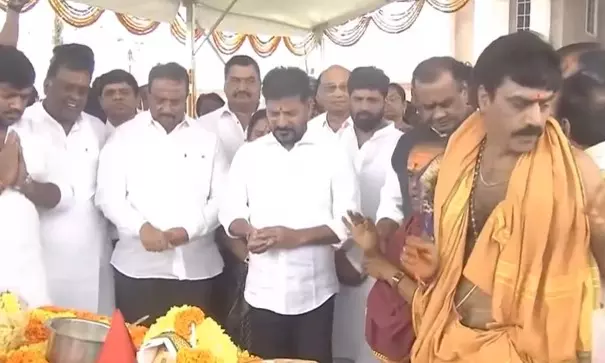 Hyderabad: Bhoomi pooja for the Telangana Thalli statue at the Telangana Secretariat conducted on Wednesday in the presence of Chief Minister Revanth Reddy, Ministers, MPs, MLAs and MLCs.