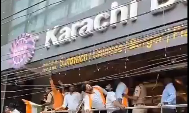 Hyderabad: The RGIA town police registered a case against 10 BJP activists for attacking a Karachi Bakery outlet in Shamshabad, demanding that the name board be removed. The bakery has repeatedly explained the background to the name, but still comes under attack at the time of India-Pak tensions.