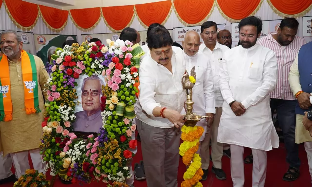 Kishan Reddy hailed Vajpayee as an intellectual, poet, and administrator who addressed the UN in Hindi, India's principal language. Despite Congress toppling his government by one vote, Vajpayee resigned upholding morals, transformed India into a nuclear power amid global threats, and inspired youth as 'Yuwa Hrudaya Samrat'.