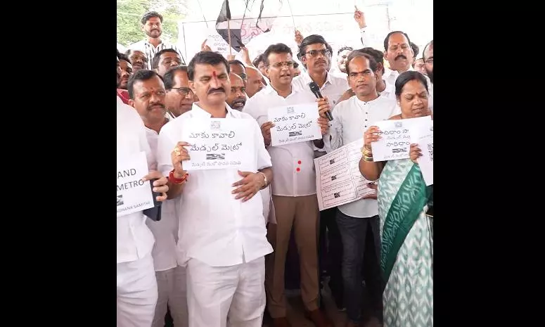 Meanwhile, a number of organisations under the banner of Metro Sadhana Samithi staged a dharna demanding the state government to extend the Metro from JBS to Medchal on NH 161 and from JBS to Shamirpet on the Rajiv Highway.