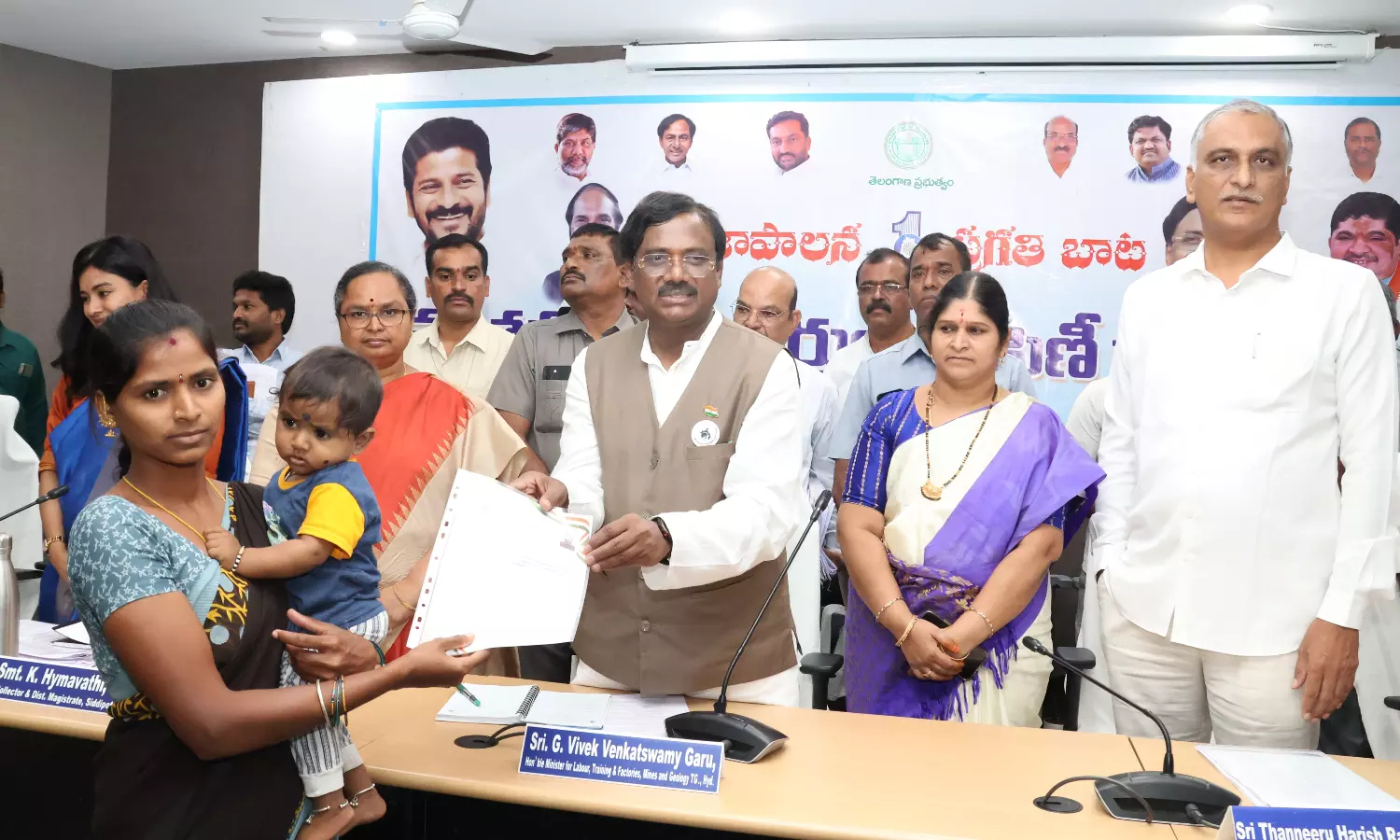 BRS activists protested that MLA K. Prabhakar Reddy’s photograph was missing from the programme’s flex banners. Congress activists responded with counter slogans, leading to a disruption of the event. Minister Vivek, Collector Hymavathi, and police officials intervened to pacify both groups, and the programme resumed.