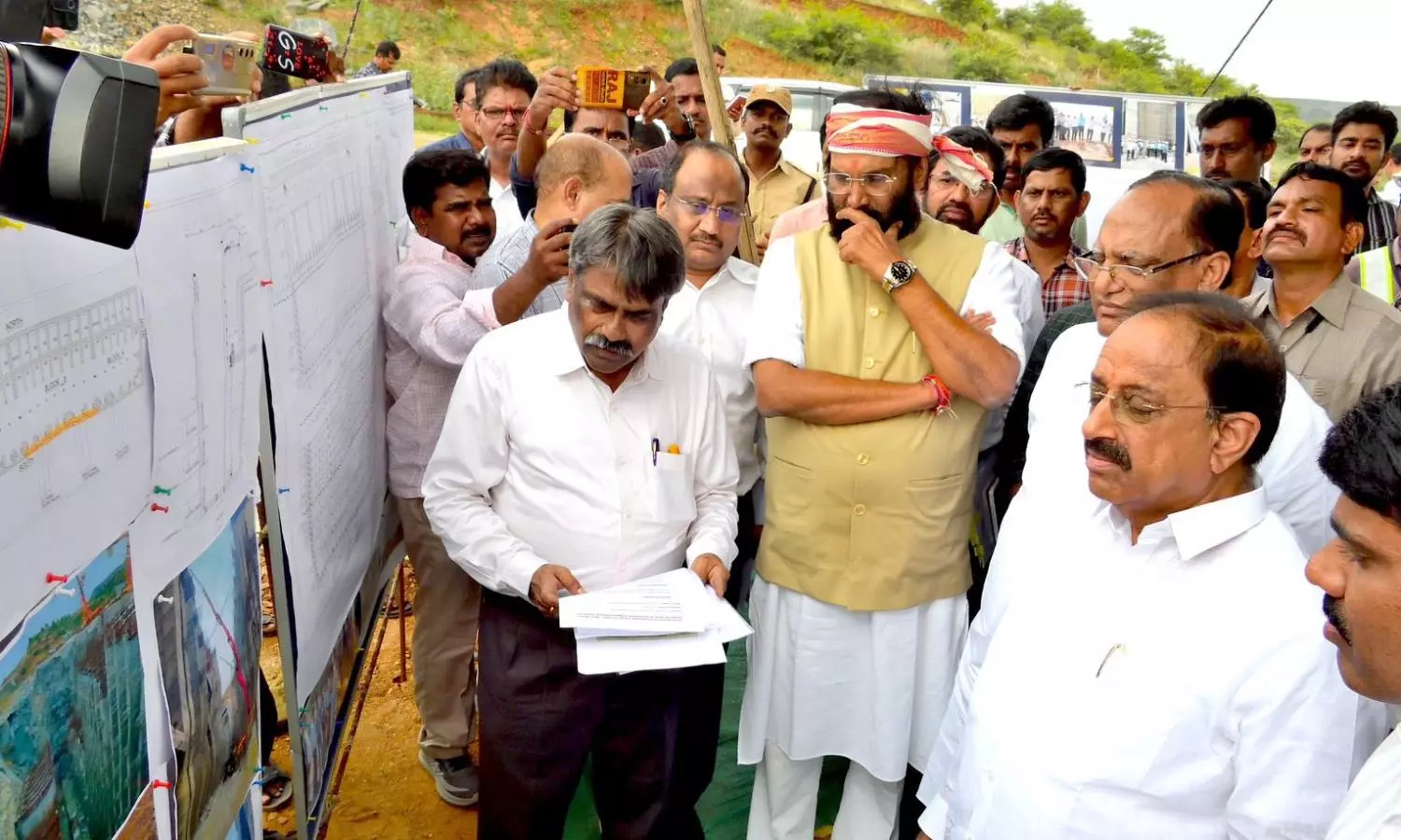Along with Legislative Council chairman Gutha Sukender Reddy and agriculture minister Tummala Nageswara Rao, Uttam Kumar Reddy inspected the intake well of Sunkishala project, where a retaining wall had collapsed at Palthi thanda in Peddavoora mandal in Nalgonda district.