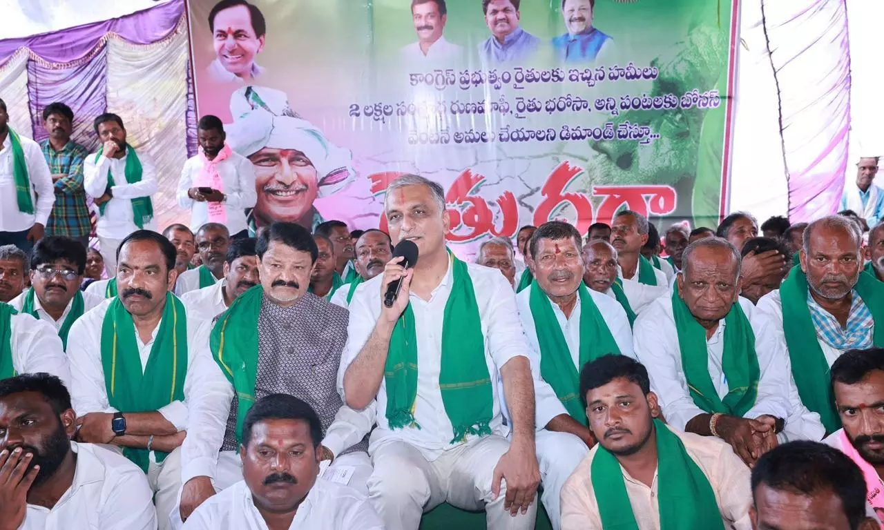 BRS senior leader and former minister T. Harish Rao, who took part in a protest in Nanganur mandal of Siddipet district demanding waiver of loans of those who are not yet covered, said that in Nanganur mandal alone, of the 11,000 farmers, only 5,000 received the loan waiver. “The BRS will not rest until the Congress government keeps all its promises to farmers including a Rs 500 bonus for paddy, not just for the fine variety of the crop, Rythu Bharosa of Rs 7,500 per acre per season,” Harish Rao said.