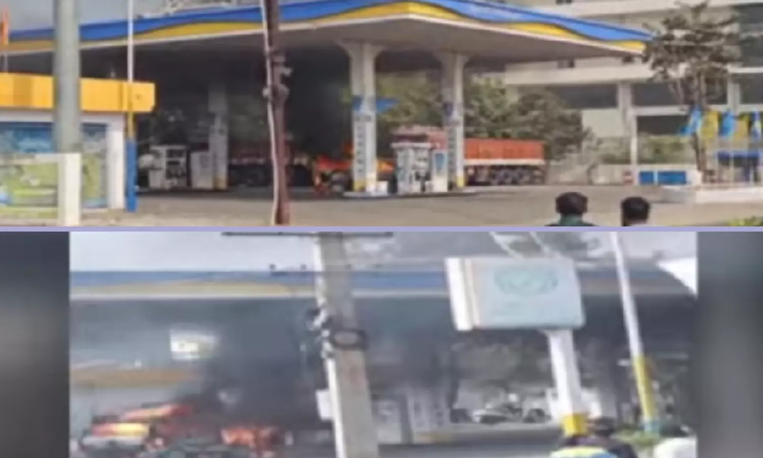 Burning Van Rolls into Petrol Bunk