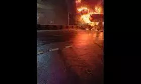 According to police, the car may have caught fire due to a short circuit. Timely response by the locals saved the life of the driver as they brought him out of the car by breaking its glasses. He received burns on his face and hands. The car was completely torched.