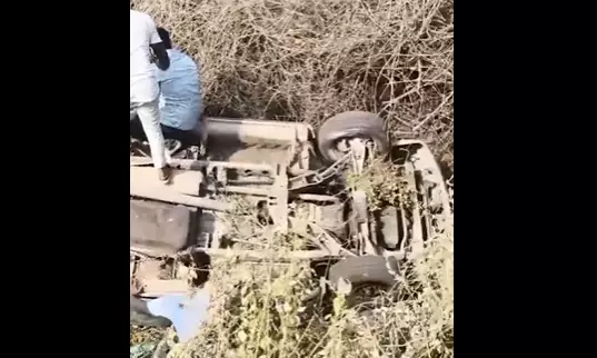 Jagtial: A car overturned near Kondagattu in Jagtial district on Tuesday, leaving 12 devotees injured. The incident occurred when the vehicle, carrying pilgrims to the Kondagattu Anjaneyaswamy temple, lost control and plunged into a deep canal near the temple road. All the passengers travelling in the car sustained injuries in the mishap.