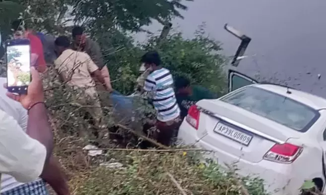 Yadadri Bhongir: A tragic accident occurred near Jalalpur in Bhoodan Pochampally mandal of Yadadri Bhongir district on Saturday at 4:30 a.m. A car lost control and plunged into a pond resulting in the death of five youths.