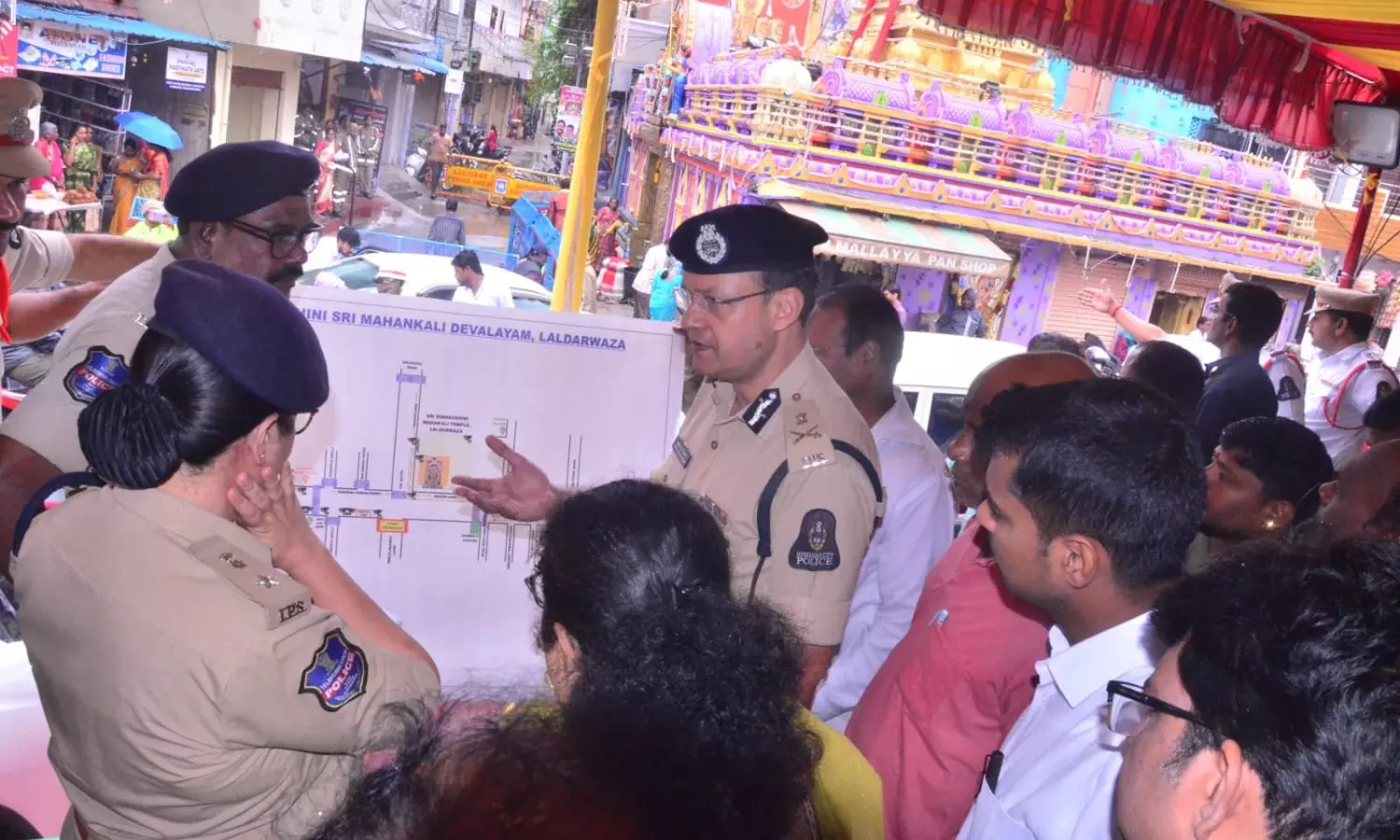 Hyderabad: Additional police commissioner Vikram Singh Mann along with department heads on Thursday visited Sri Simhavahini Mahankali Temple at Lal Darwaza and reviewed the security arrangements for Bonalu.