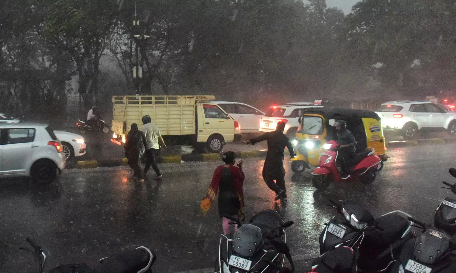 The storm, which began forming in the western city around 5.45 pm, rapidly gained intensity. Dark clouds rolled in swiftly, followed by strong winds and a downpour. Nallakunta and some areas witnessed a brief hailstorm.