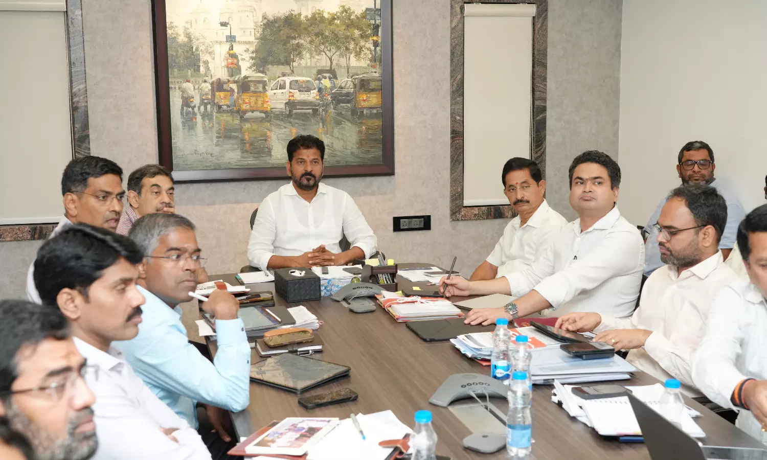 The review was attended by CM Advisor Vem Narender Reddy, Special Chief Secretary (Industries) Jayesh Ranjan, CM Secretary Manik Raj, MA&UD Secretary (HMDA Area) Ilambarthi, HMDA Commissioner Sarfaraz Ahmed, FCDA Commissioner K. Shashanka, HMWSSB MD Ashok Reddy, MRDCL MD EV Narasimha Reddy, JMD P. Gauthami, Ranga Reddy District Collector Narayana Reddy and other senior officials.