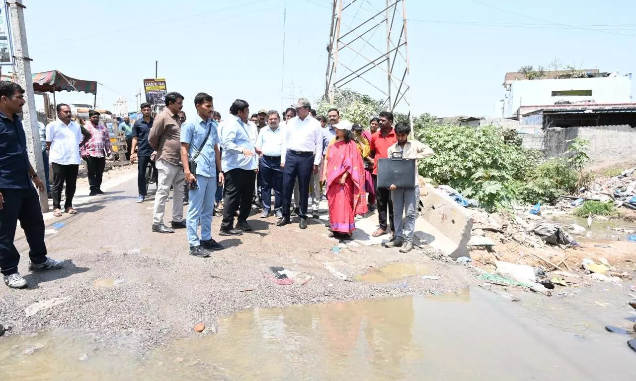 The commissioners also examined arrangements to divert sewage through underground pipelines, ensuring that only rainwater enters the lakes during heavy showers. Road-widening works under high-tension power lines between Madhapur and Borabanda were also reviewed during the visit.