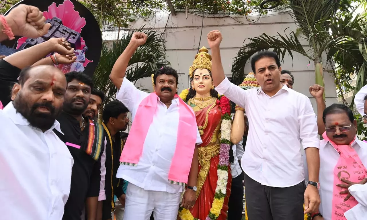 Rama Rao also reiterated that once the BRS returned to power, the Rajiv Gandhi statue at the Secretariat entrance installed by the Congress government would be replaced with the statue of Telangana Talli to “restore Telangana’s pride.”