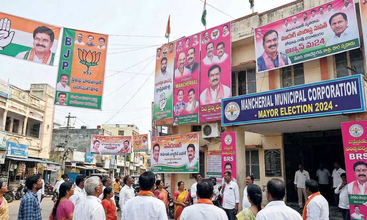 Vemulawada municipality has also witnessed heightened political activity. The town has previously elected a BJP chairperson in the first term and a BRS chairperson in the second, adding interest to the third-term contest.