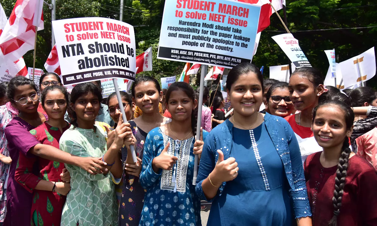 Congress, Left parties’ student wings organize protest rally on NEET fiasco in Hyderabad