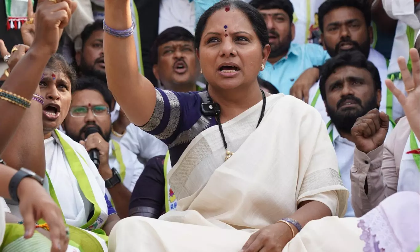 Kavitha was suspended from the Bharat Rashtra Samithi (BRS), founded by her father and former Telangana chief minister K Chandrasekhar Rao (KCR), in September 2025 after she accused her cousins and party leaders T Harish Rao and J Santosh Kumar of "tarnishing" her father's image over the Kaleshwaram lift irrigation project.
