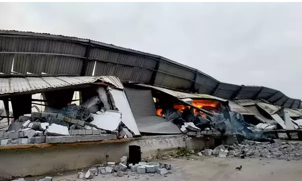 Hyderabad: A fire broke out at a private godown in Muneerabad, under Medchal police limits, on Saturday, destroying around 10,000 bales of cotton. The fire is still raging and may not be fully controlled until Sunday, fed by the cotton in the godown.