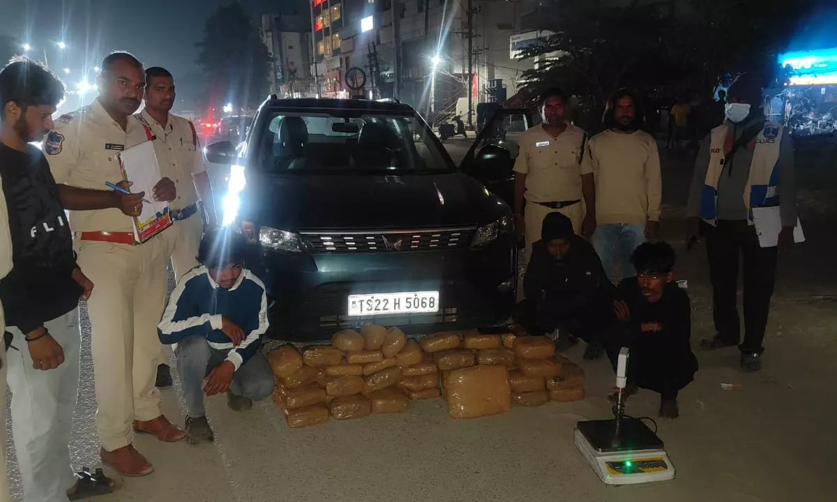 Hyderabad: The Cyberabad Special Operations Team (SOT) in collaboration with Chandanagar police seized ganja worth Rs 17.85 lakh on Monday. Acting on a tip-off, the police intercepted a car coming from Odisha and conducted a thorough search.
