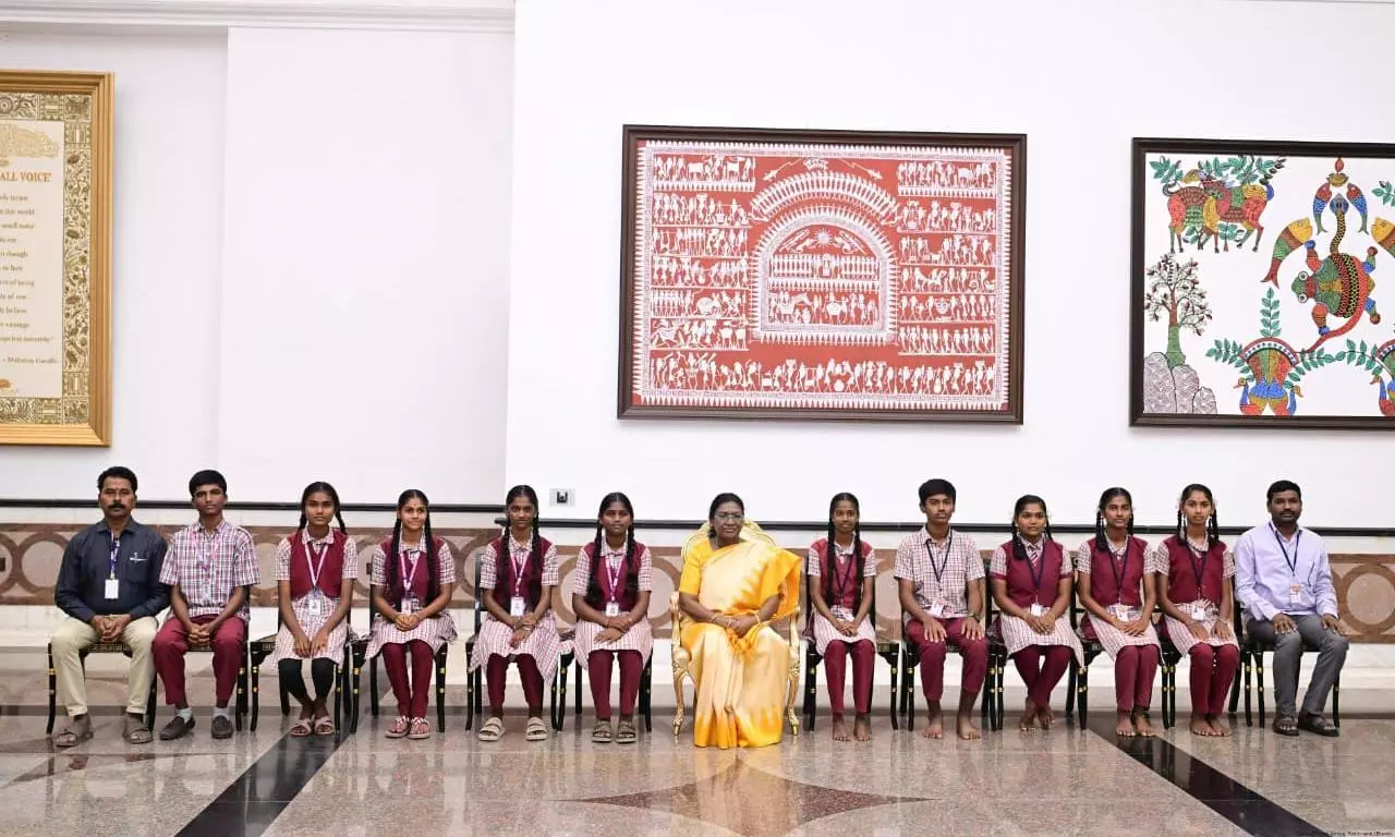 Hyderabad: A delegation of students and teachers from PMSHRI Zilla Parishad High School in Gajulapet in Telangana had the esteemed honor of meeting with the President of India Murmu at Rashtrapati Bhavan in New Delhi, during their educational tour.