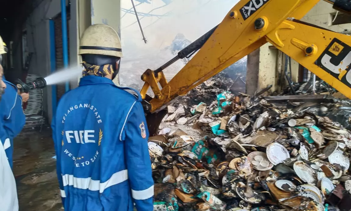 According to Kukatpally SFO T. Jagan Mohan, the unit deals with the manufacturing of paper and steel plates. The fire is suspected to have erupted due to a short circuit, he said.