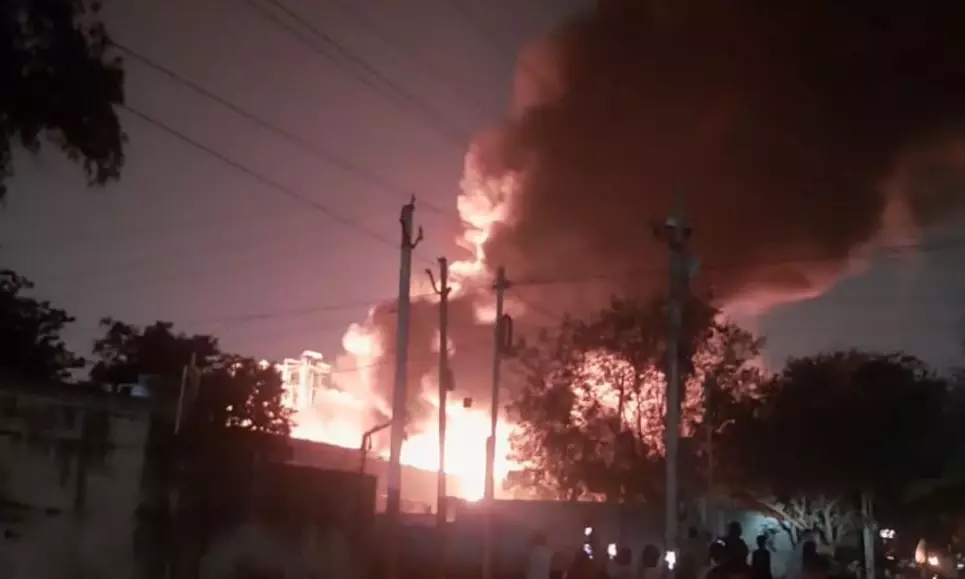 Hyderabad:A massive fire broke out at a storage facility of Sarvodaya Solvents, a chemical factory in Cherlapally Phase 1. There were no casualties and the plant was empty on Tuesday in view of a holiday declared by the management due to maintenance works.