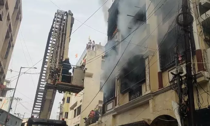 On hearing screams of residents in the building, the locals came to their rescue and alerted the fire control room around 8.30 am. Four fire tenders from Gowliguda and a fire robot were first rushed to the spot to douse the flames.