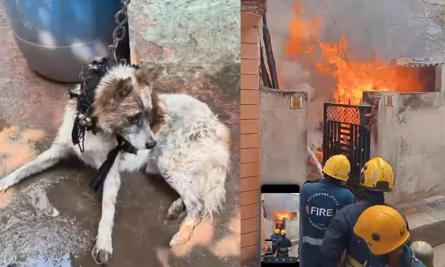 “Initially, while extinguishing the fire, we were unaware that a pet dog was trapped inside. Later, firefighter Mohammed Shoukat and I entered the premises, unchained the dog, gave it water, and safely handed it over to its owner,” Shanmukha Rao added.