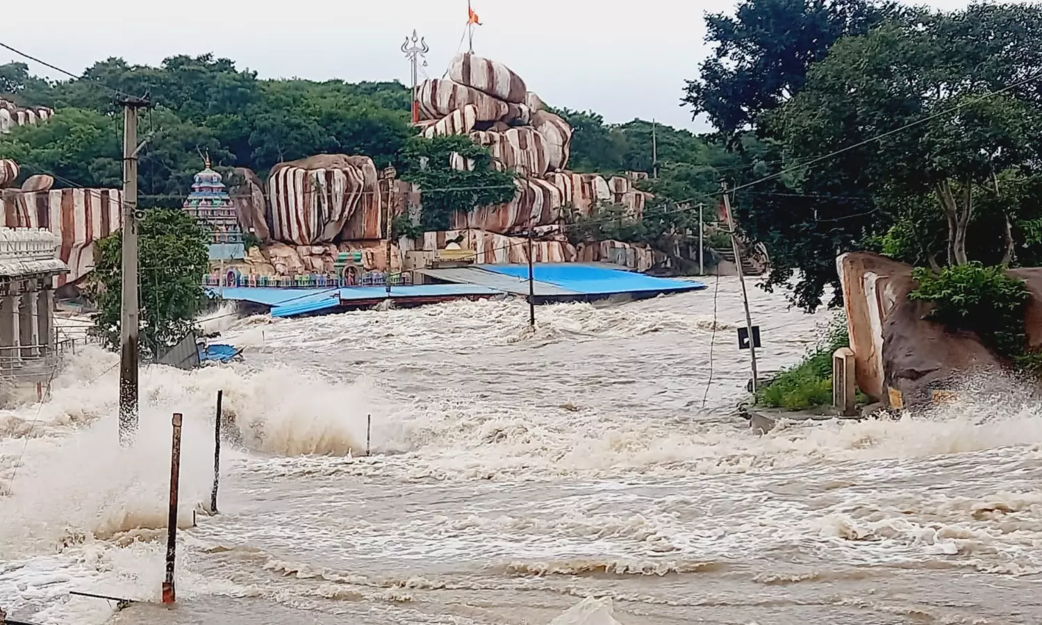 Due to heavy rains in the upper catchment areas of the Singur project, 10 gates were lifted, releasing 1,24,000 cusecs of water downstream. This raised fears of submergence of bridges on the Pothanachettupalli route. For safety reasons, police stopped vehicles at the third bridge itself.