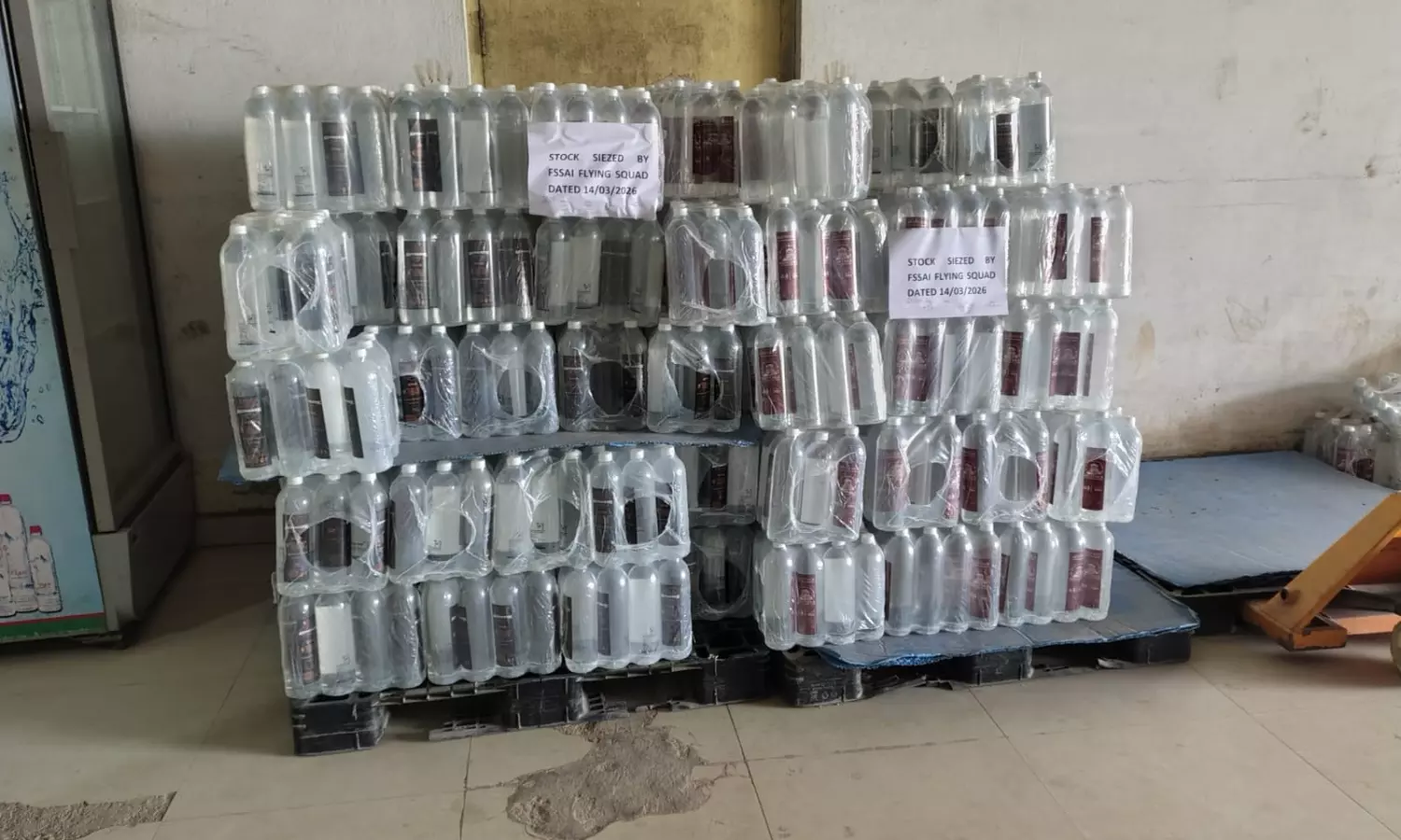 Officials collected statutory samples for laboratory analysis and seized packaged drinking water stocks worth Rs. 55,800. Action will be initiated against the operator under the Food Safety and Standards Act.