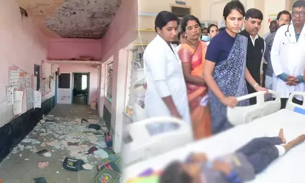 Sangareddy: Four students were seriously injured when slabs of an Anganwadi school building collapsed in Venkatapur village, Narayankhed mandal. The students were taken to Narayankhed Government Hospital for treatment after sustaining significant injuries. Upon learning, District collector Kranthi Vallur and local MLA Sanjiva Reddy visited the hospital where children are being treated for the injuries.