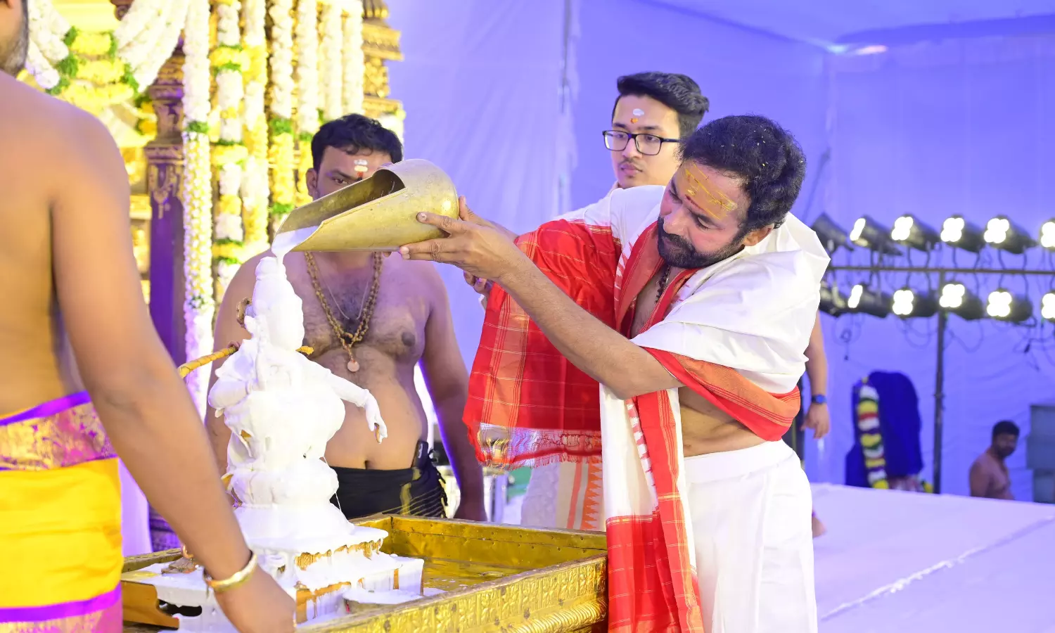 Hyderabad: A large number of devotees took part in the Ayyappa Maha Padi Puja performed by state BJP president and Union minister G. Kishan Reddy and his wife Kavya at the Keshav Memorial College ground at Narayanguda on Sunday. They have been conducting the puja annually for 24 years.