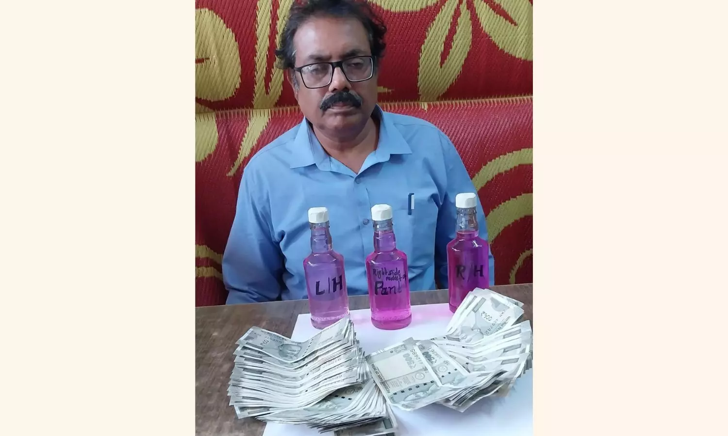 Officials seized the chemical-laced cash and conducted a test. The fingers of the accused officer tested positive. He was arrested and produced before a court for judicial remand.