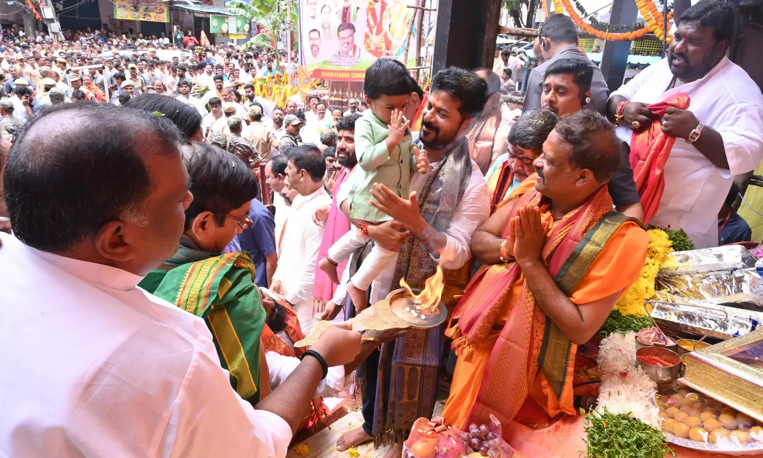 Chief Minister A. Revanth Reddy, along with his grandson, offered prayers and brought with him a large offering of 'laddus.'