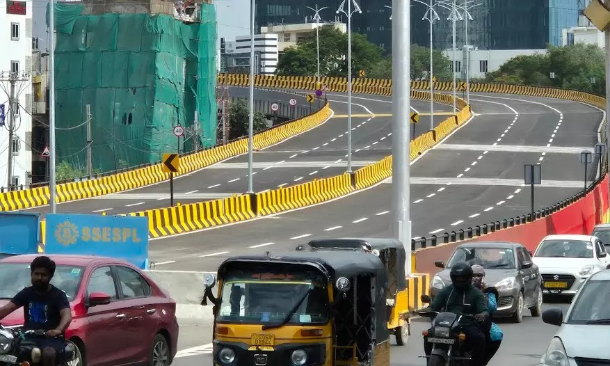Hyderabad: Even before its inauguration, the newly-constructed Kondapur–Gachibowli flyover, to be named the PJR Flyover, has triggered serious road safety concerns, particularly due to rumble strips installed along its curves. These strips appear to contradict earlier GHMC assurances about removing “unscientific” speed control mechanisms across the city.