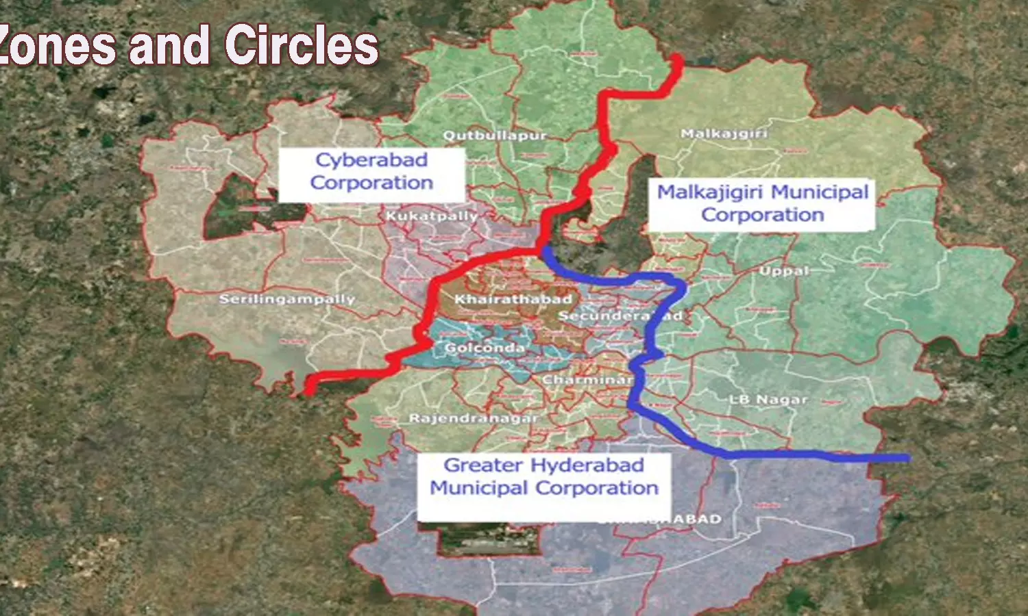 Hyderabad: The Telangana government has reorganised the Greater Hyderabad Municipal Corporation (GHMC) into three separate Municipal Corporations - Greater Hyderabad, Cyberabad, and Malkajgiri to meet administrative requirements arising from the city’s rapid expansion. In December last year, 27 municipalities in the surrounding areas of Hyderabad were merged into GHMC, increasing its jurisdiction from 650 sq. km to 2,053 sq. km, making it a megacity. There are now 60 circles divided among three municipal corporations.