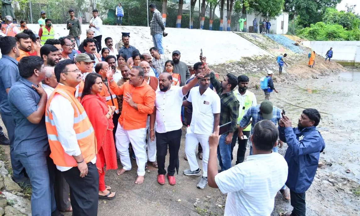 Hyderabad:The Safilguda lake is being prepared for the upcoming immersion of Lord Ganesha idols, following directives issued to the authorities. On Tuesday, the mini tank at Safilguda in Secunderabad sone was inspected to assess the sanitation conditions and the state of the roads. GHMC officials were instructed to ensure smooth sanitation management and to address complaints promptly. Continuous monitoring of sanitation activities was also emphasised.