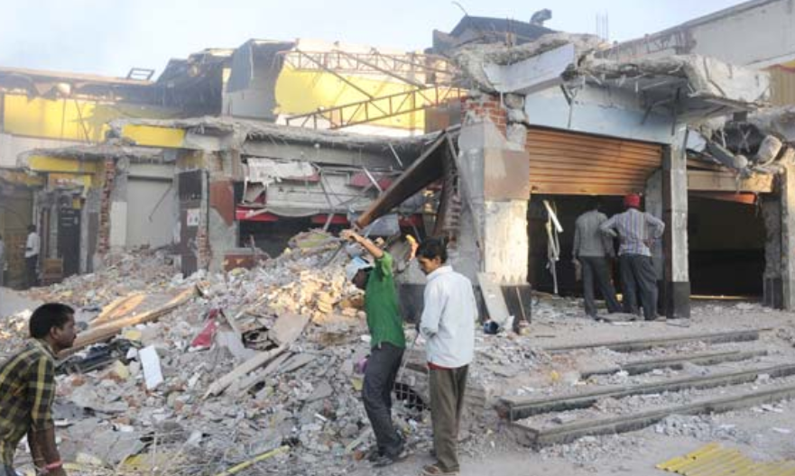 Residents were forced to vacate their homes and move their belongings outside when GHMC officials arrived with earthmovers.