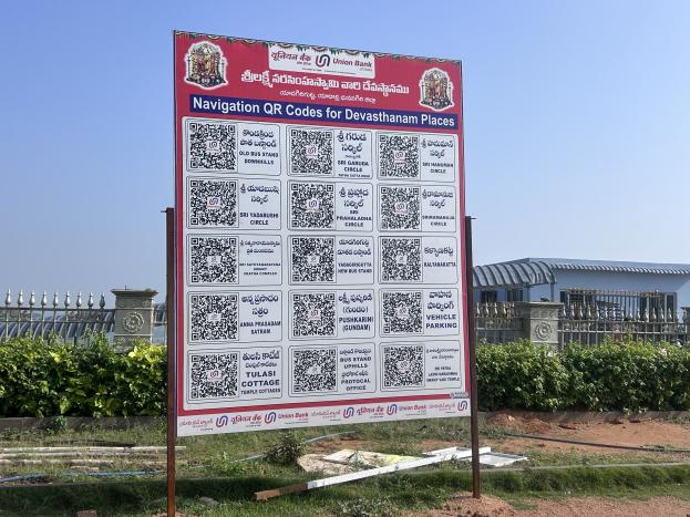 A board featuring navigation QR codes of all major junctions and prominent devotional sites has been placed near the prasadam token counters on the hill shrine. Devotees can scan the QR codes on their mobile phones to locate various places. QR codes have also been provided for key spots such as the RTC bus stand, Kalyana Katta, Sri Satyanarayana Swamy Vratha Mandapam, Anna Prasadam Sathram, Lakshmi Pushkarini, vehicle parking area, Tulasi Cottage, and the old Lakshminarsimha Swamy temple.