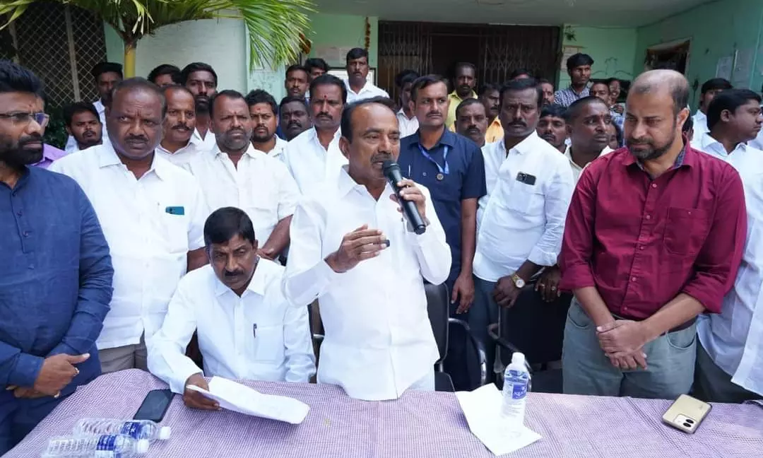 Hyderabad: BJP Malkajgiri MP Etala Rajendar accused the state government of trying to take back 410 acres of assigned land from farmers without paying compensation at Dundigal village in Quthbullapur Assembly limits.