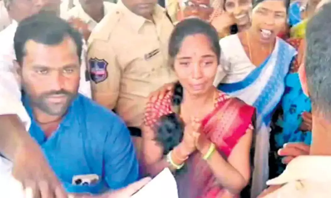 Drama unfolded at a Grama Sabha in Darga Thanda of Mahabubabad district when a young woman expressed her frustration with the behaviour of officials. During the meeting, she dared the officials by slapping her thigh as a way of showing her anger.